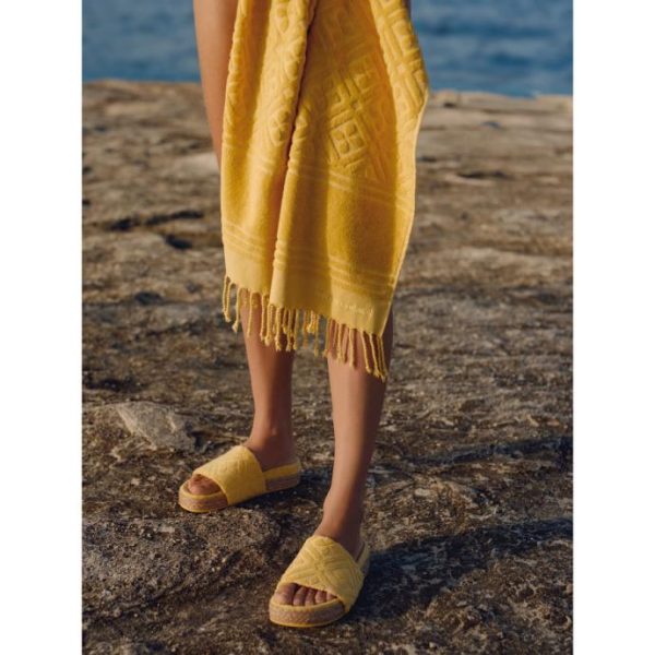 Slide into style with the Joanna Terry Slide, perfect for beach strolls, poolside lounging, or running weekend errands. Made from 100% Turkish cotton for supreme softness & style. Embrace summer vibes with the Joanna Terry Slides. Available in medallion and parchment.